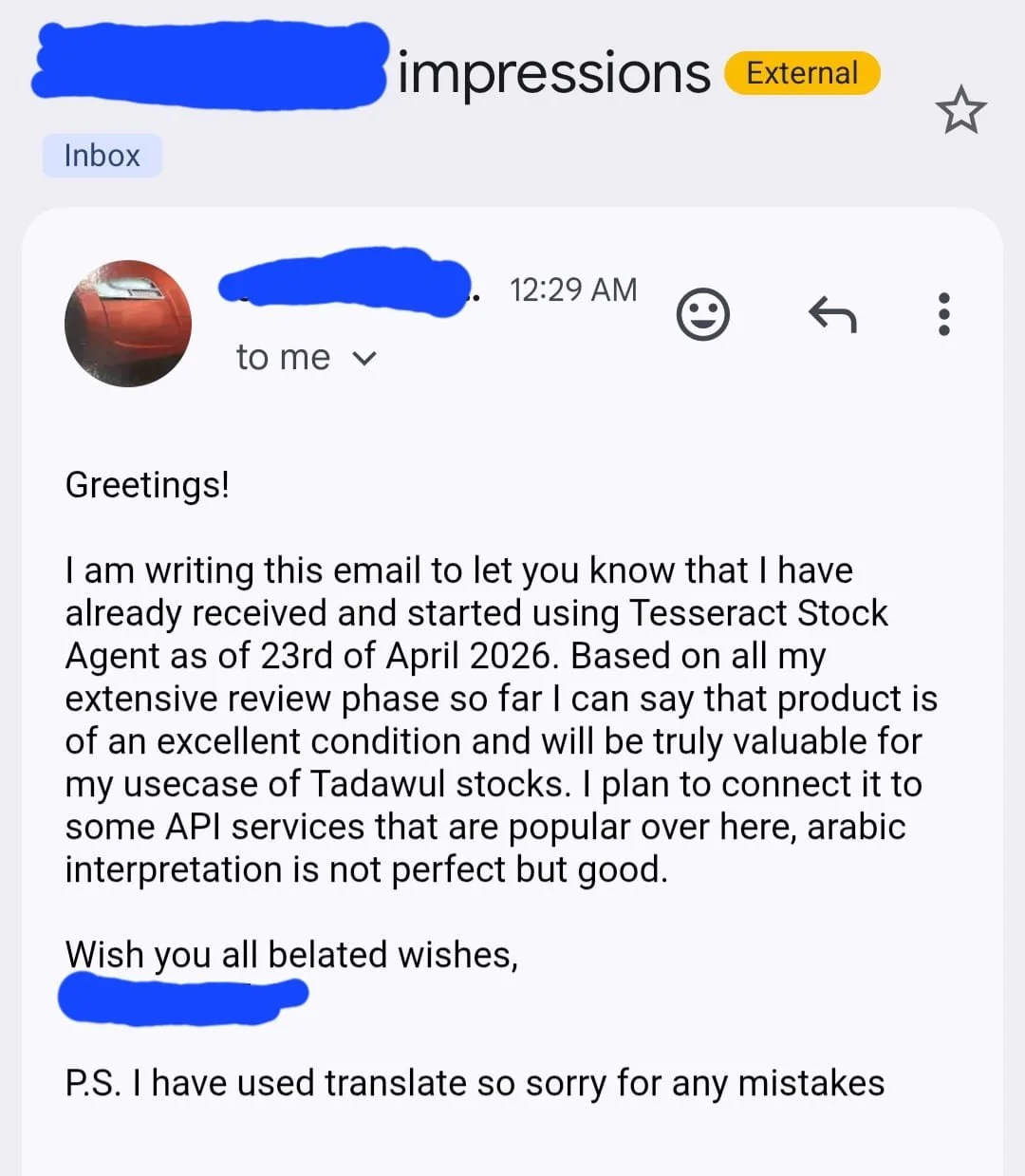 The first stock-research vertical agent you actually own. Tesseract Stock Agent